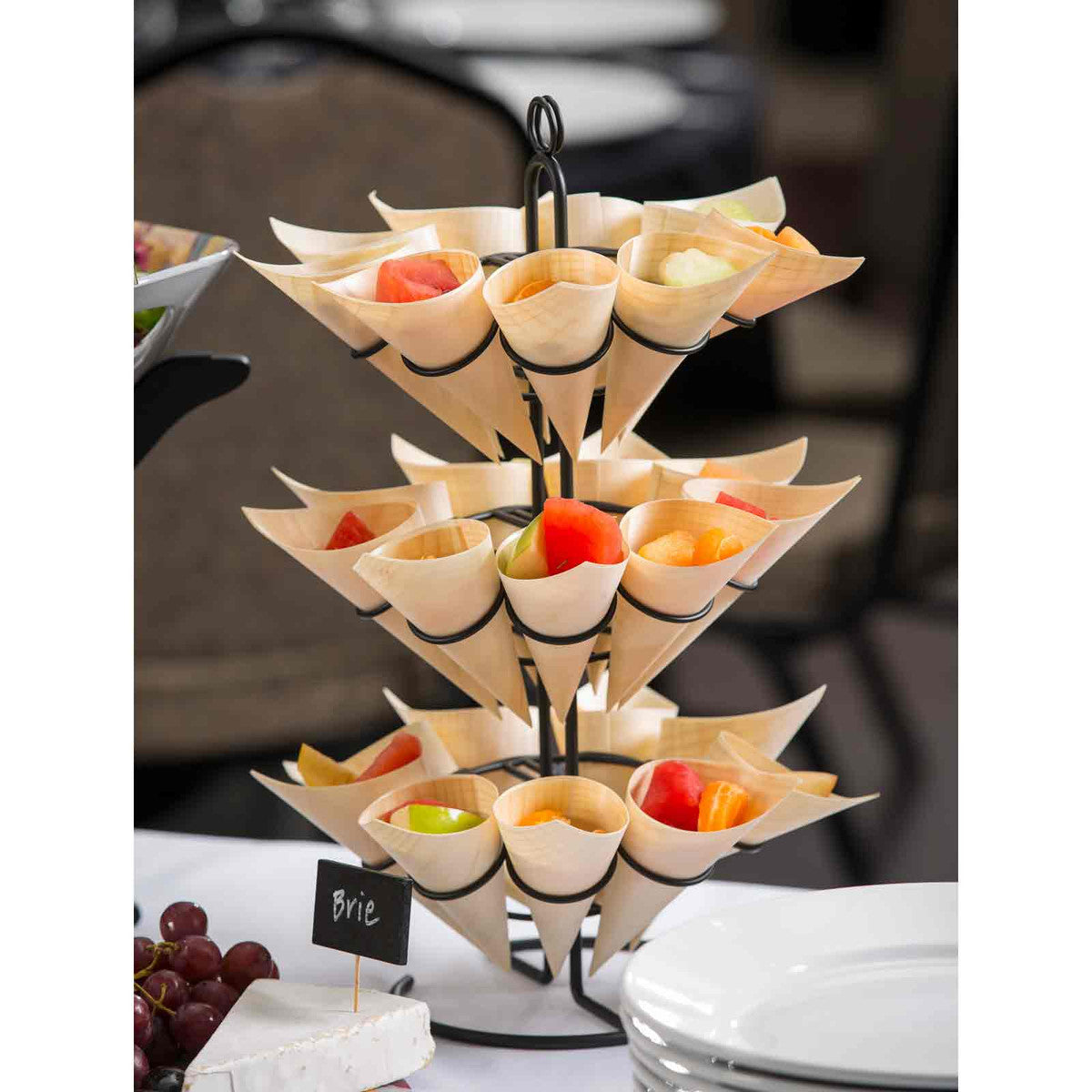 Create an unforgettable display or serving experience with our sturdy, disposable poplar Cones. Ideal for finger foods, single-serve treats, snacks, apps, desserts and more these Cones are a charming -- and eco-friendly -- alternative to single-use plastic plates or bowls. And a hassle-free clean-up! Pack of 50.
