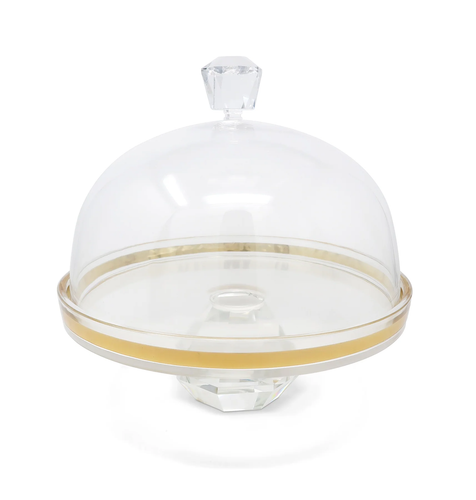 VCP5088 Glass Cake Dome Gold Design with Diamond Shaped Base and Handle