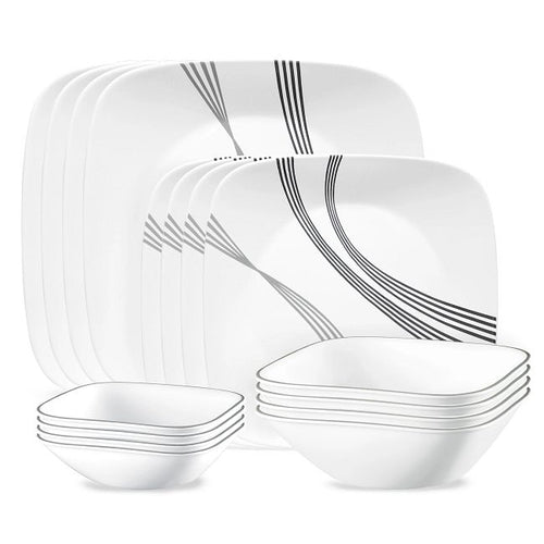 CORELLE MUGLESS SQ. 12pc SET SIMPLE LINES Service For 4