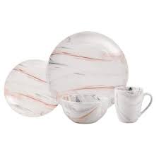 LH148 16 PIECE PORCELAIN GREY MARBLE SET
