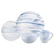 LH147 16 PIECE PORCELAIN BLUE MARBLE SET