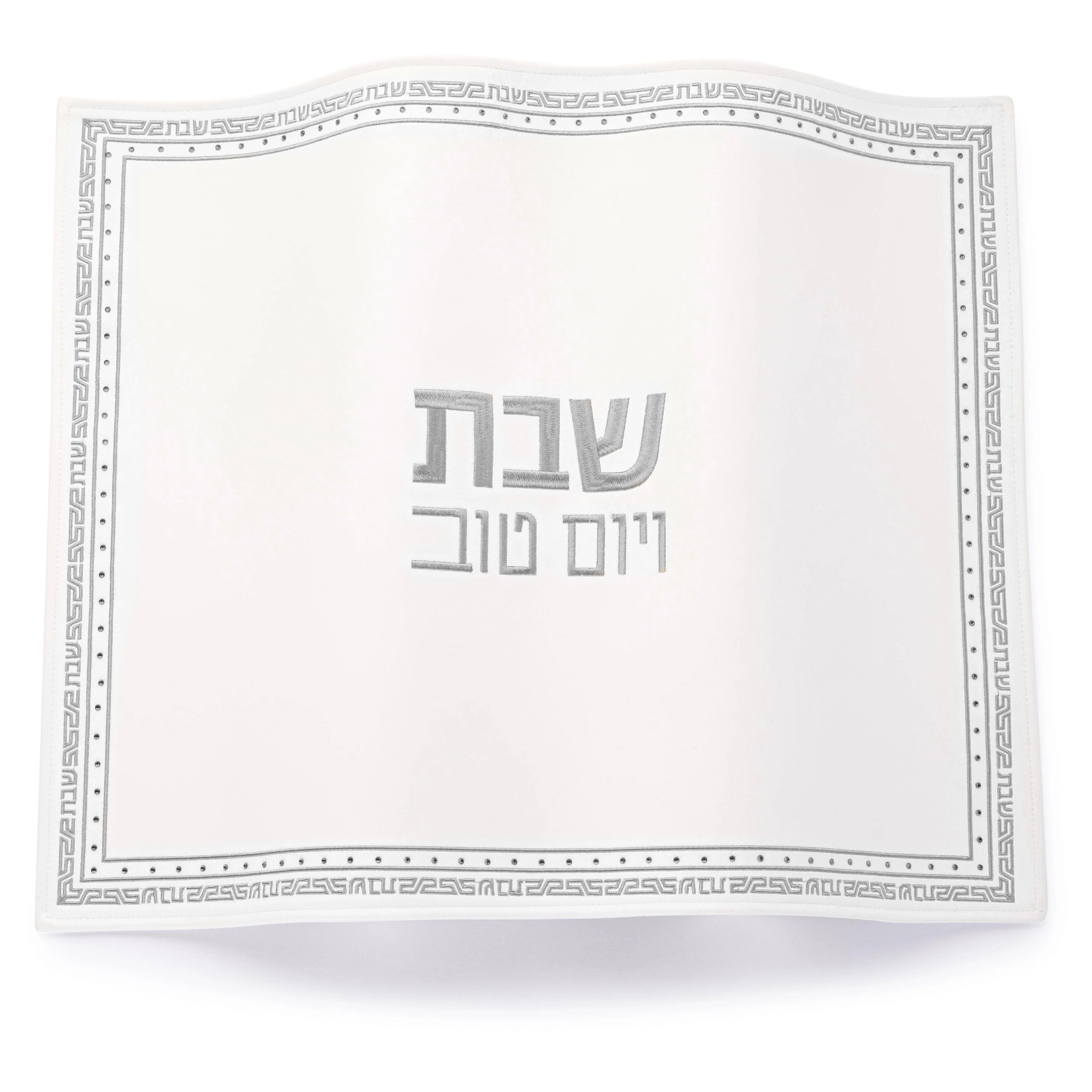 PU-CC-ECS-S PU Leather Challah Cover - Embroidered Crystal Stone - Silver
