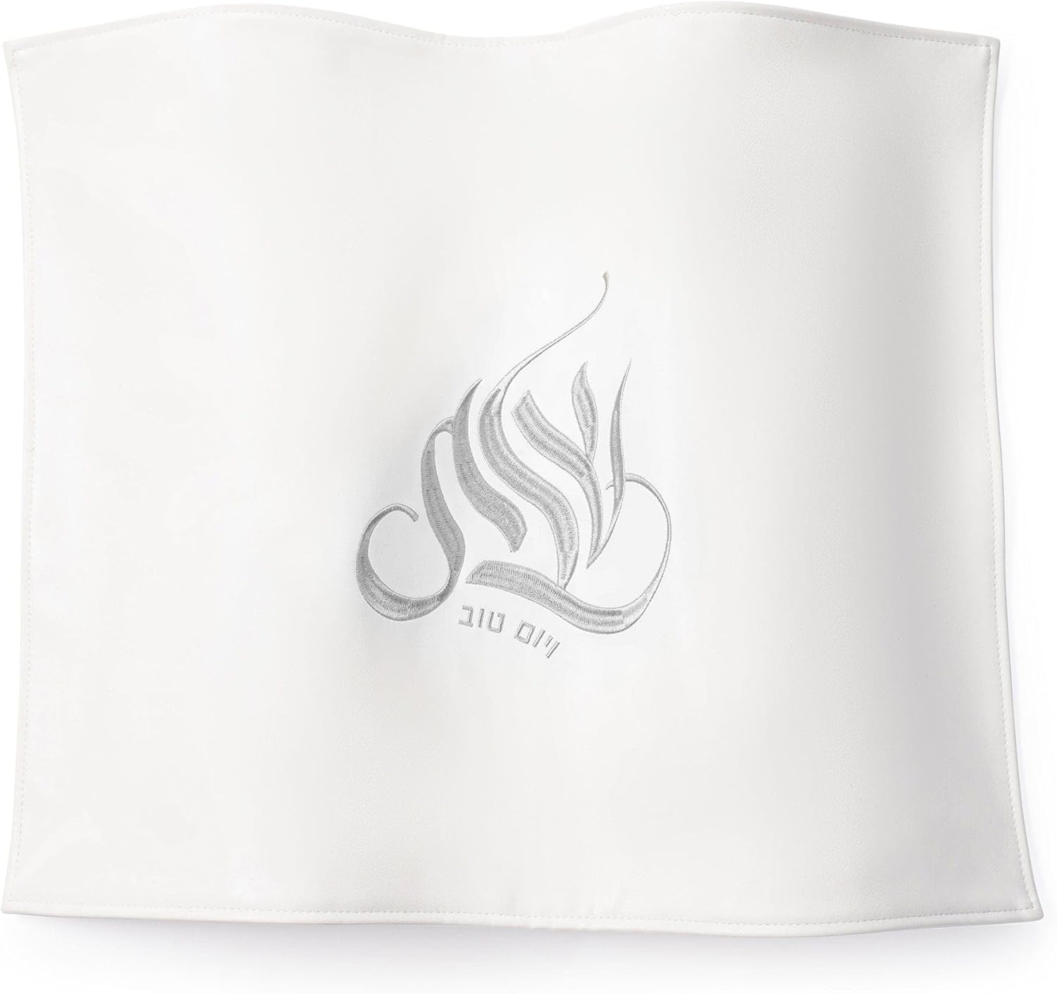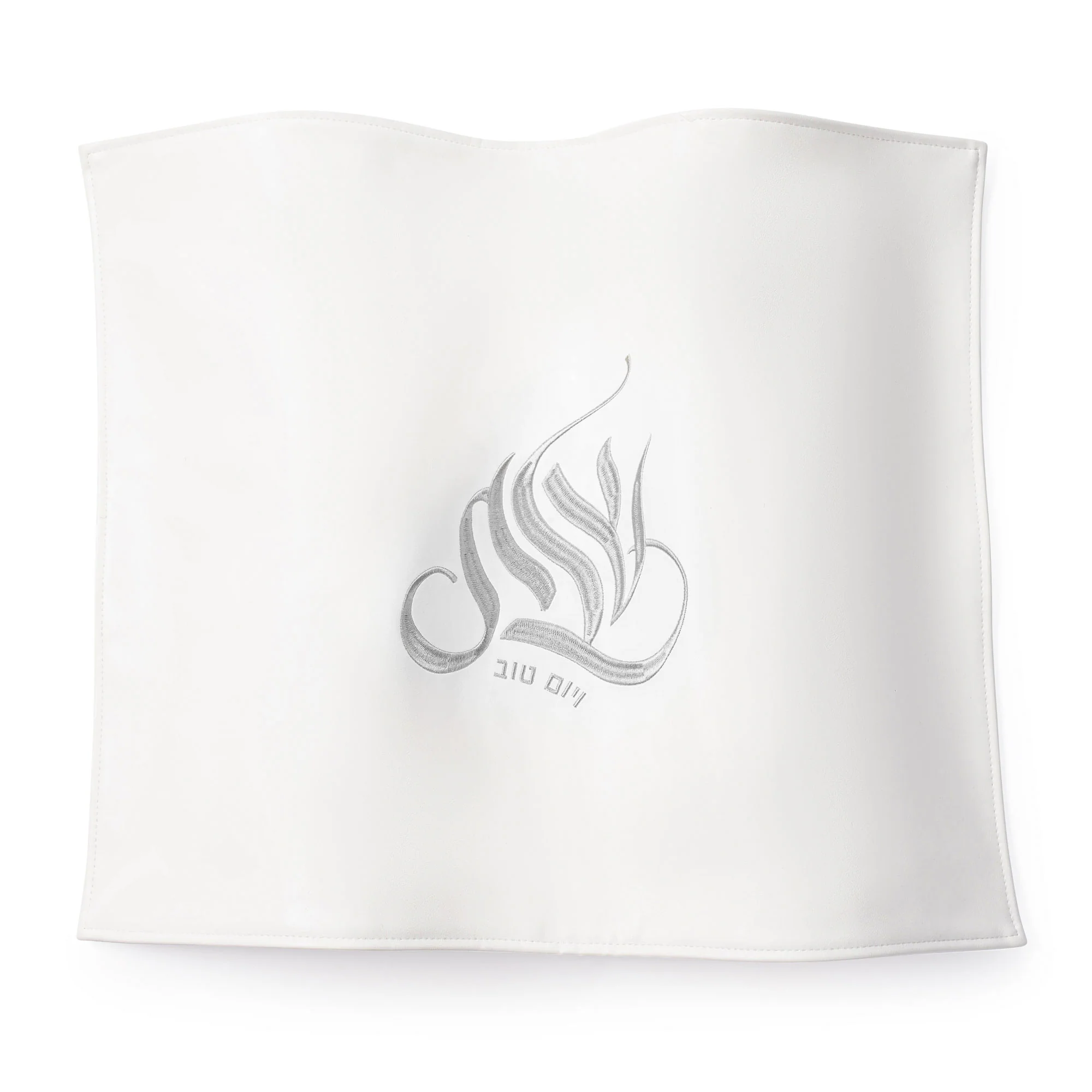 This magnificent Leather Challah Coverwill make a striking addition to your Shabbos table. Features white leather the word shabbos and Yom Tov embroidered in the middle. Premium quality & feel ! Both practical and beautiful, this Challah cover would make a great gift. Dimensions: 17.5" x 22" Faux leather with embroidered words Wipe down Backed with a layer of cotton