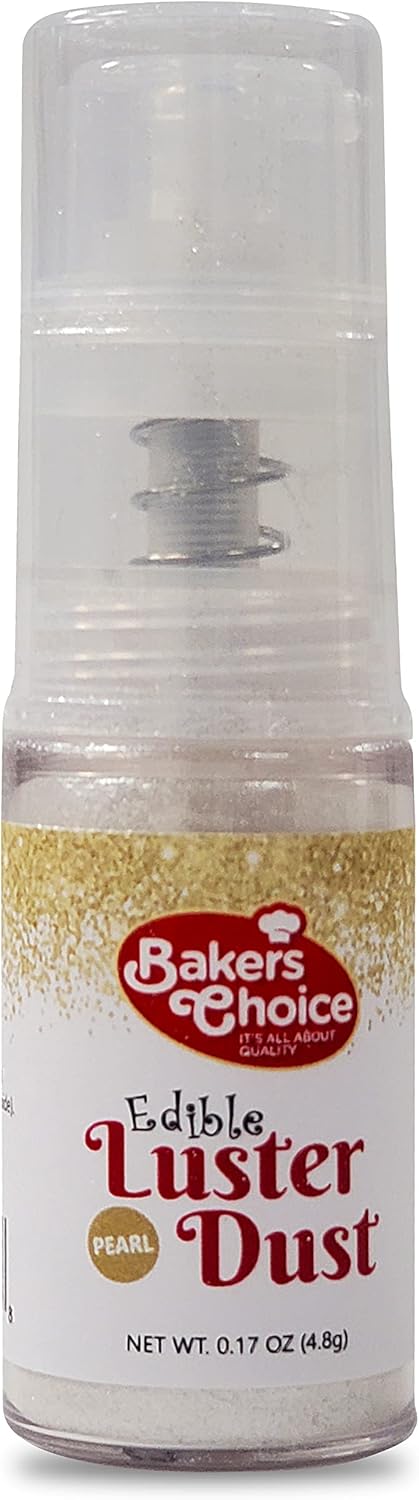 Give your baked goods a magical finish with Baker’s Choice Edible Luster Dust! It’s perfect as cake glitter, edible glitter for strawberries, cookies, cake pops, brownies, pies and other delicious treats. It’s easy to use and ideal for use with gum paste, rolled fondant, icing, frosting, glaze, melting chocolate or other wet finishes. With a variety of colors, you can add a hint of color and sparkle to your sweet confections. It adds so much shimmer and makes desserts look magically delicious. Add a touch of edible shimmer dust to your dessert decorations. Make the perfect unicorn or disco dust cake or add some edible glitter for chocolate covered strawberries, cookies, or pretzels. It’s the perfect decoration for birthday, anniversary, wedding parties and holiday desserts. Our edible dusting powder is the new icing on the cake! Don’t bake without Baker’s Choice!AVAILABLE IN 5 COLORS: Pink Luster Dust EdibleBlue Luster Dust EdibleGold Luster Dust EdiblePearl Luster Dust EdibleSilver Luster Dust EdibleIT SHINES, SHIMMERS AND SPARKLES!Our edible luster dust for chocolate is so fantastic it can also be used for baked goods and as an edible drink glitter for all your vodka and beverages. A little goes a long way and it’s super sparkly! It’s perfect for birthdays, Christmas, Hanukah, weddings, anniversaries, Valentines and other special occasions.EASY TO USEIt’s easy to use and mess free! Just spray some over wet surfaces like fondue, frosting or icing and wait for it to dry. ABOUT USAt Baker’s Choice, we believe it’s all about quality. Established in 1997, we’ve been working hard to provide ready-made baking ingredients for our customers. We source the globe for a unique variety of premium quality ingredients to make our toppings and dessert decorations. Choose Baker’s Choice, where customer satisfaction is our top priority.