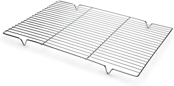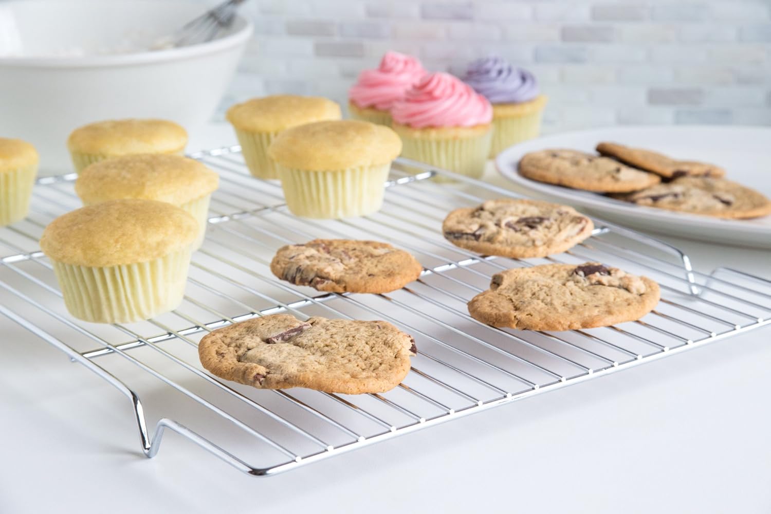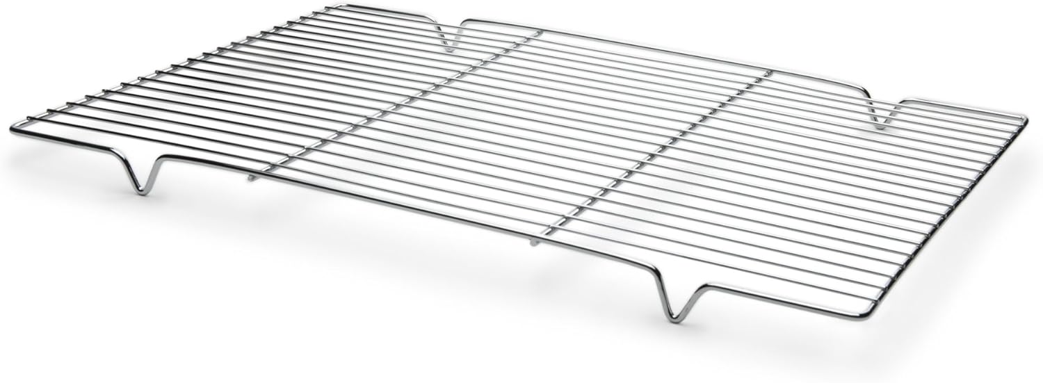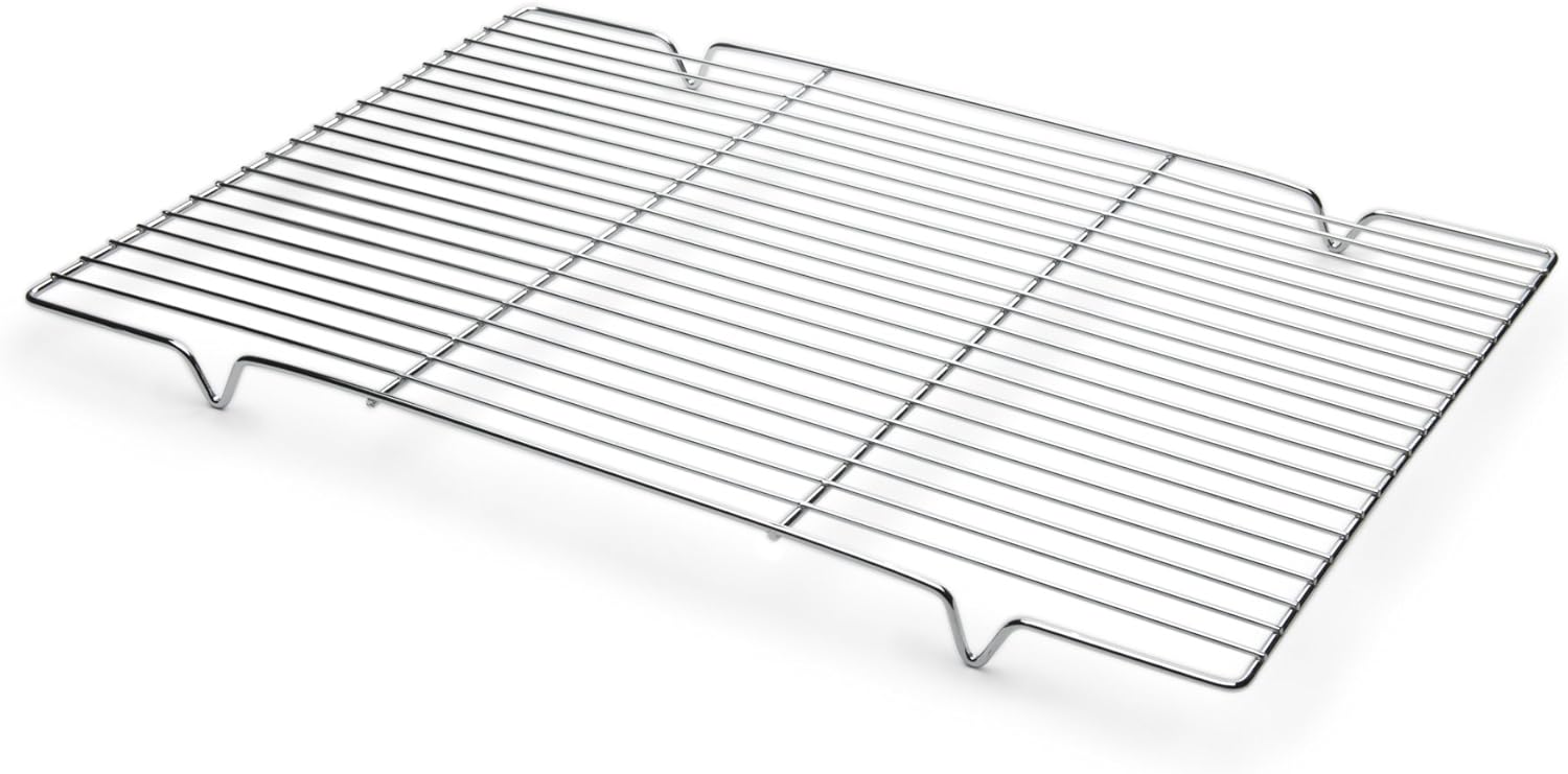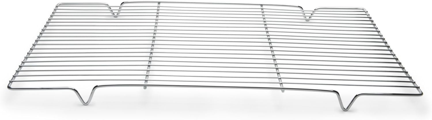 A baker's essential! End the baking process profoundly by placing your fresh-out-of-the-oven cookies, cakes, and breads on this Rectangular Cooling Rack. Made of durable, lightweight iron with a sleek chrome finish, the cooling grid elevates your baked goods for uniform cooling and nice, crisp undersides. It can also be used to keep hot pots and dishes off the table or countertop to avoid heat marks or stains. The rack's wires are set close enough together to support cakes and prevent cookies from slipping through. Don't end up with less-than-perfect baked goods due to poor cooling. A must-have for bakers everywhere.