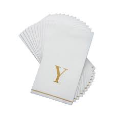14 PK White and Gold Guest Paper Napkins - Letter Y