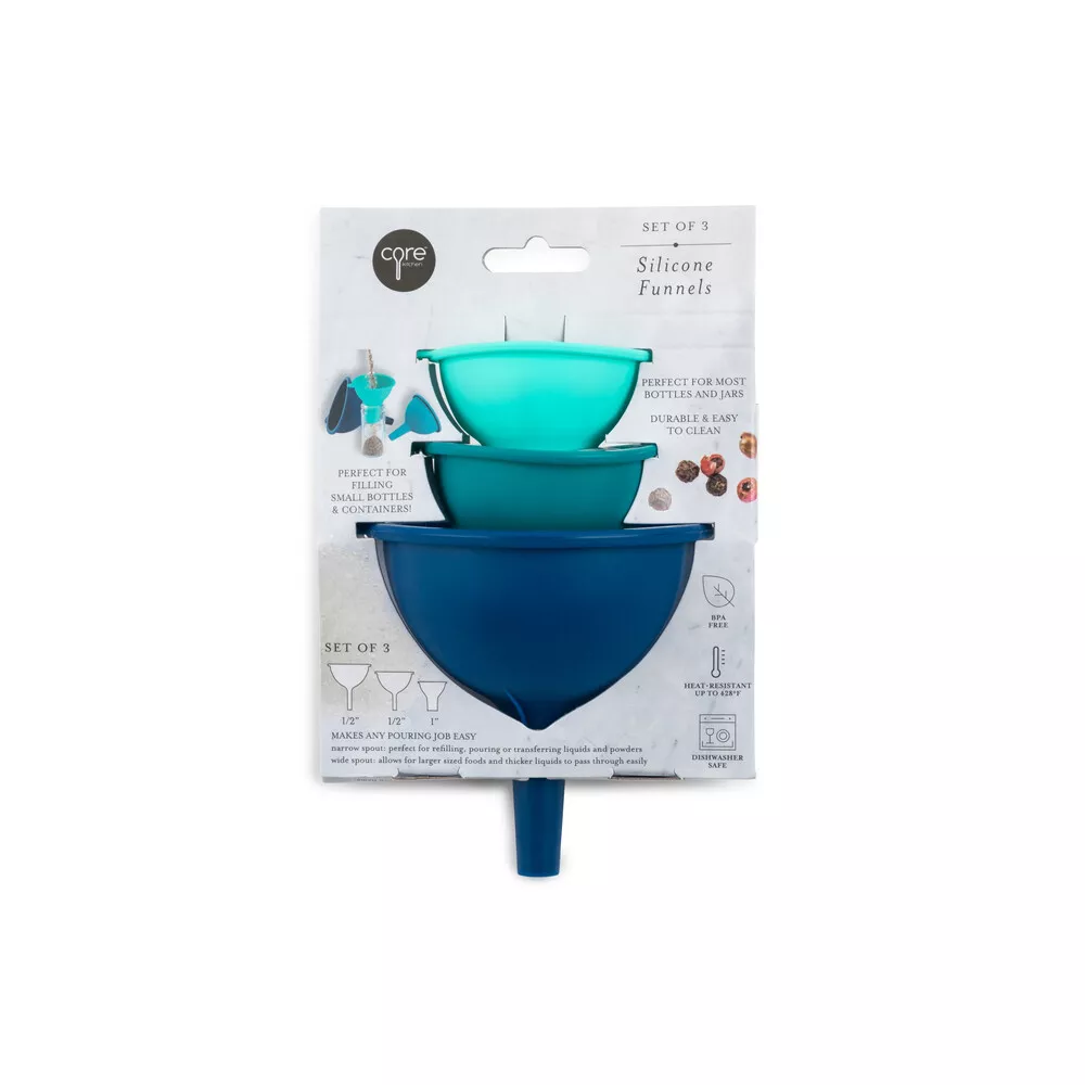 - Core kitchen silicone funnels can be used for baking, canning and any other kitchen task