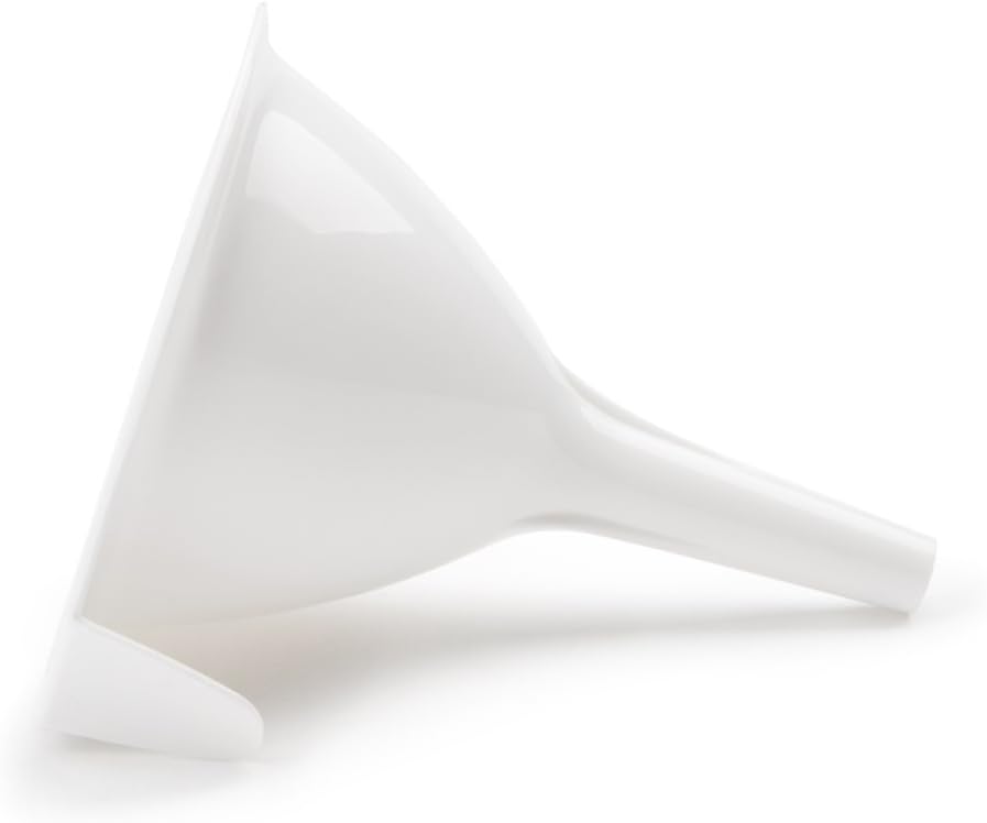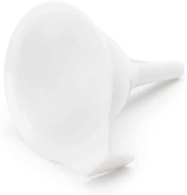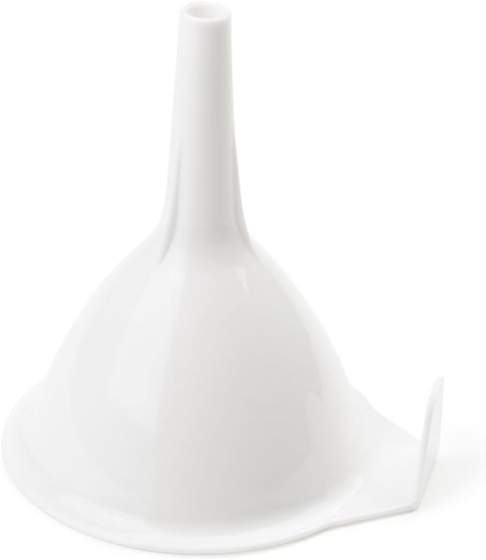 Take the mess out of pouring ingredients into bottles and containers.'s 4" Funnel is constructed of durable plastic and is a great size for transferring liquids and powders into storage jars or stylish serving bottles. Ideal for cooking and baking ingredients, transferring salad dressings, garnishing plates and meals, dispensing melted chocolate over desserts, and even refilling essential oils, perfumes, and more. Get a more controlled, consistent and clean flow of liquids and ingredients.
