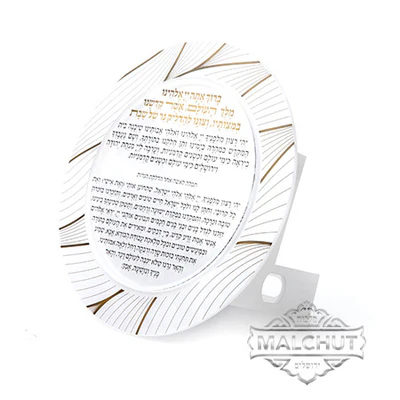 HN360G HADLUKAS NEIROS 3 IN 1 Tzedukah and Matchbox Holder Gold Design/Pearl White Round 6.5''x6.5''