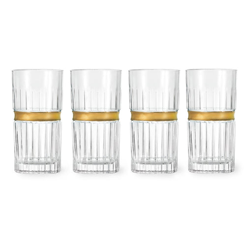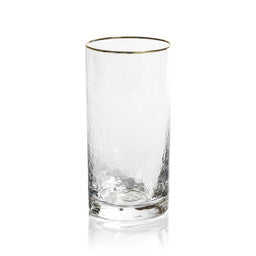 • CH-6213 Negroni Hammered Highball Glass - Clear with Gold Rim