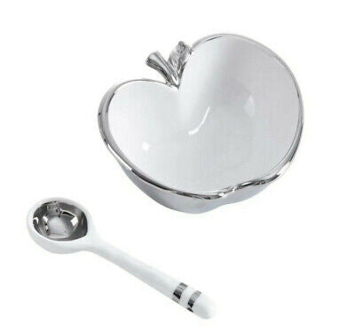 96770 WHITE MARBLE APPLE Honey Dish