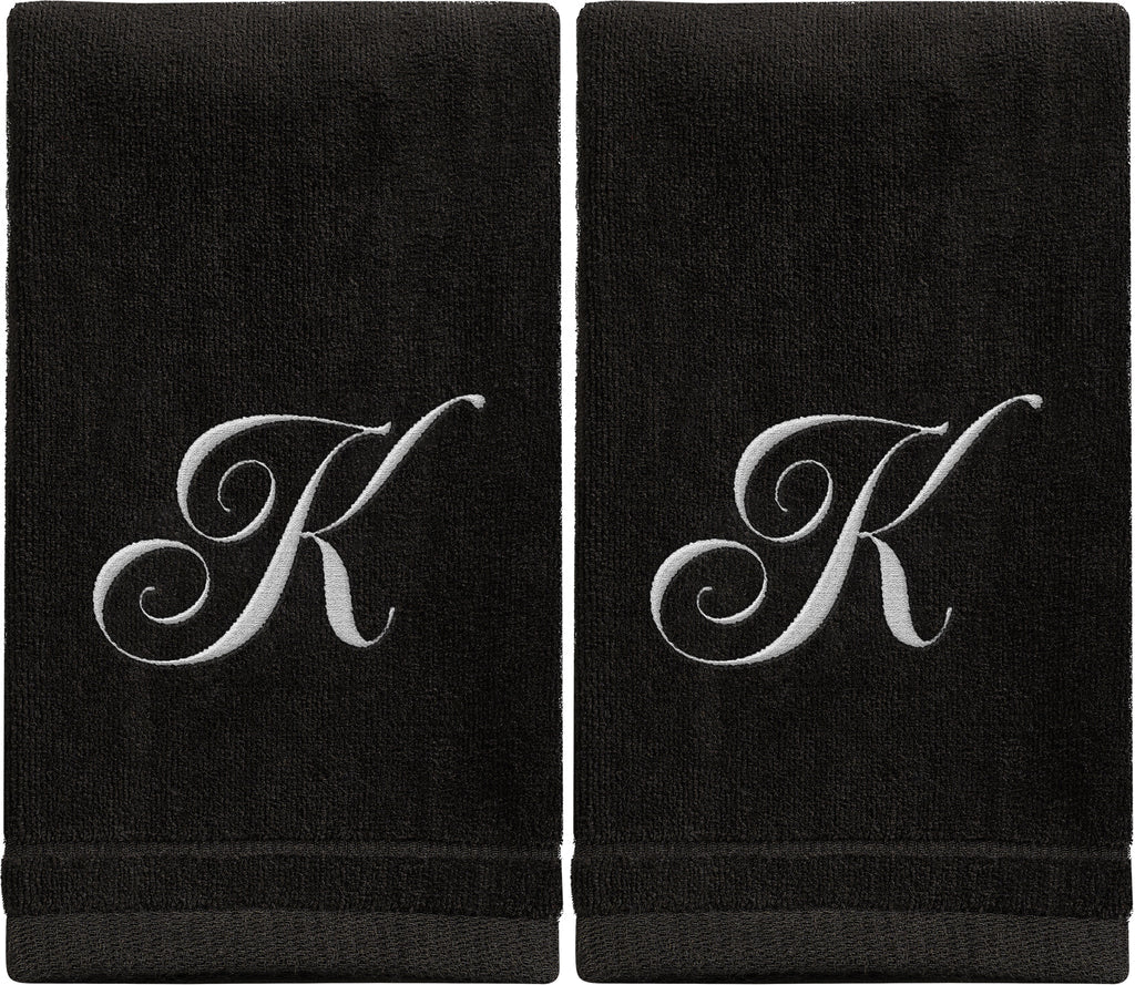 • Load image into Gallery viewer, Black Monogrammed Towel - White Embroidered - Initial K