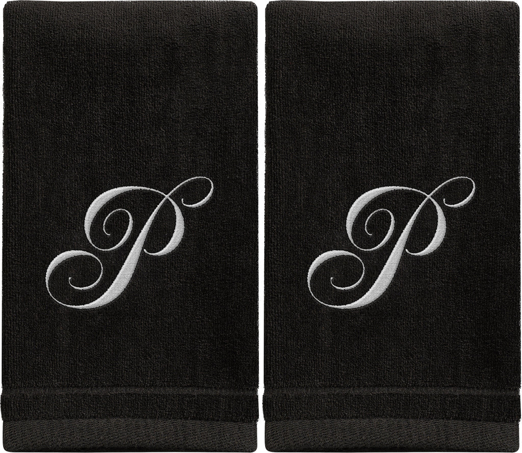 • Load image into Gallery viewer, Black Monogrammed Towel - White Embroidered - Initial P