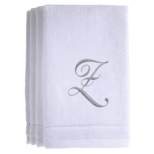 White Monogrammed Towel - Black Embroidered - Initial Z