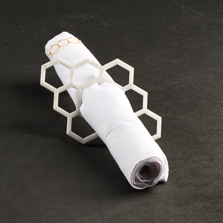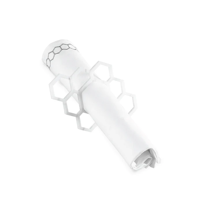 HNR-WHT Honeycomb Napkin Rings- White Marble Lucite- Set of 4