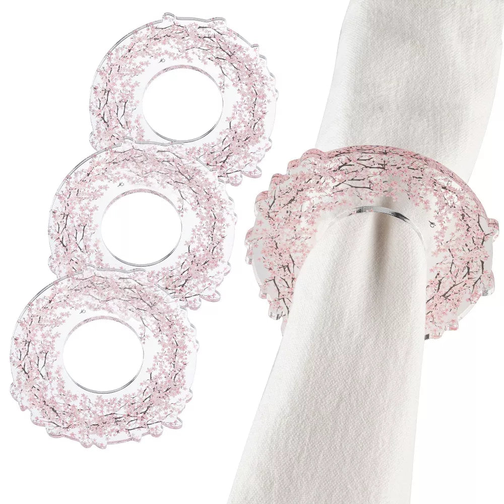 These gorgeous, classy Cherry Blossom Napkin Rings are a must-have at your spring or summer table! Features a gorgeous clear lucite with soft cherry blossom print. Coordinate with the cherry blossom charger for a perfect set. Set by each seat to upgrade your tablescape!