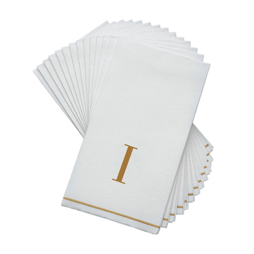 14 PK White and Gold Guest Paper Napkins - Letter I