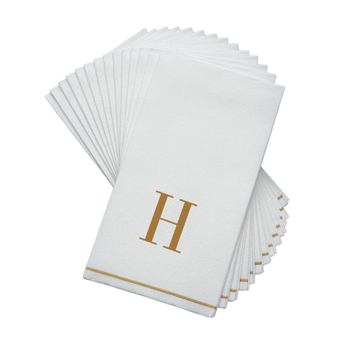 14 PK White and Gold Guest Paper Napkins - Letter H