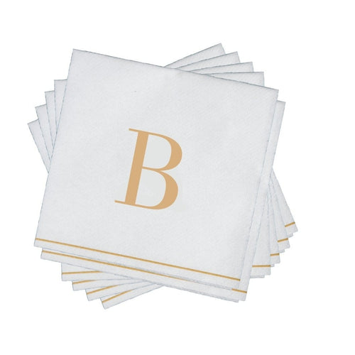 16 PK White and Gold Cocktail Paper Napkins - Letter B