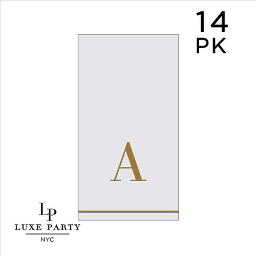 14 PK White and Gold Guest Paper Napkins - Letter A