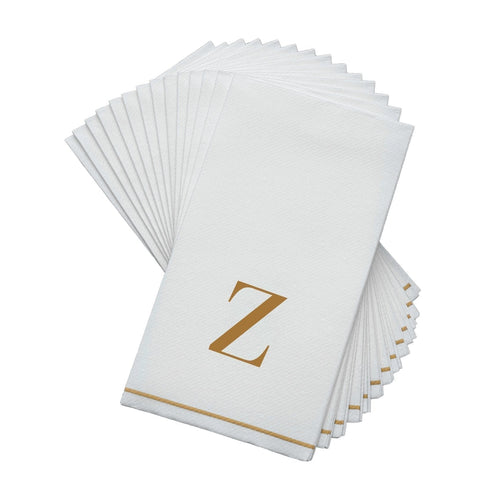 14 PK White and Gold Guest Paper Napkins - Letter Z