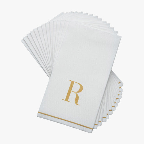 14 PK White and Gold Guest Paper Napkins - Letter R
