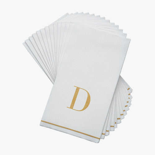 14 PK White and Gold Guest Paper Napkins - Letter D