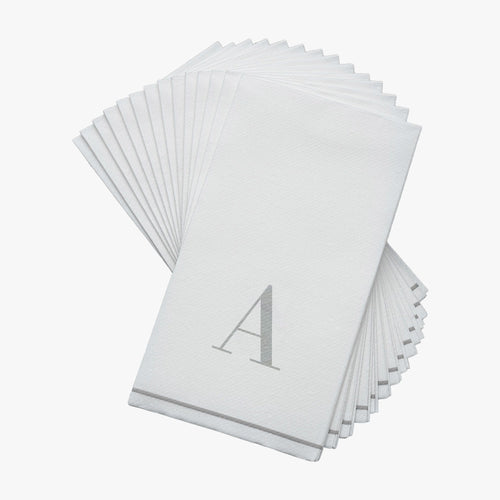 14 PK White and Silver Guest Paper Napkins - Letter A