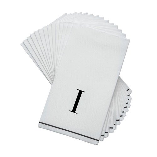 14 PK White and Gold Guest Paper Napkins - Letter J
