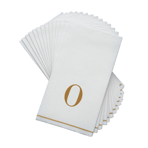 14 PK White and Gold Guest Paper Napkins - Letter O