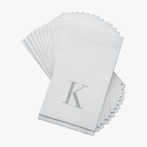 14 PK White and Silver Guest Paper Napkins - Letter K