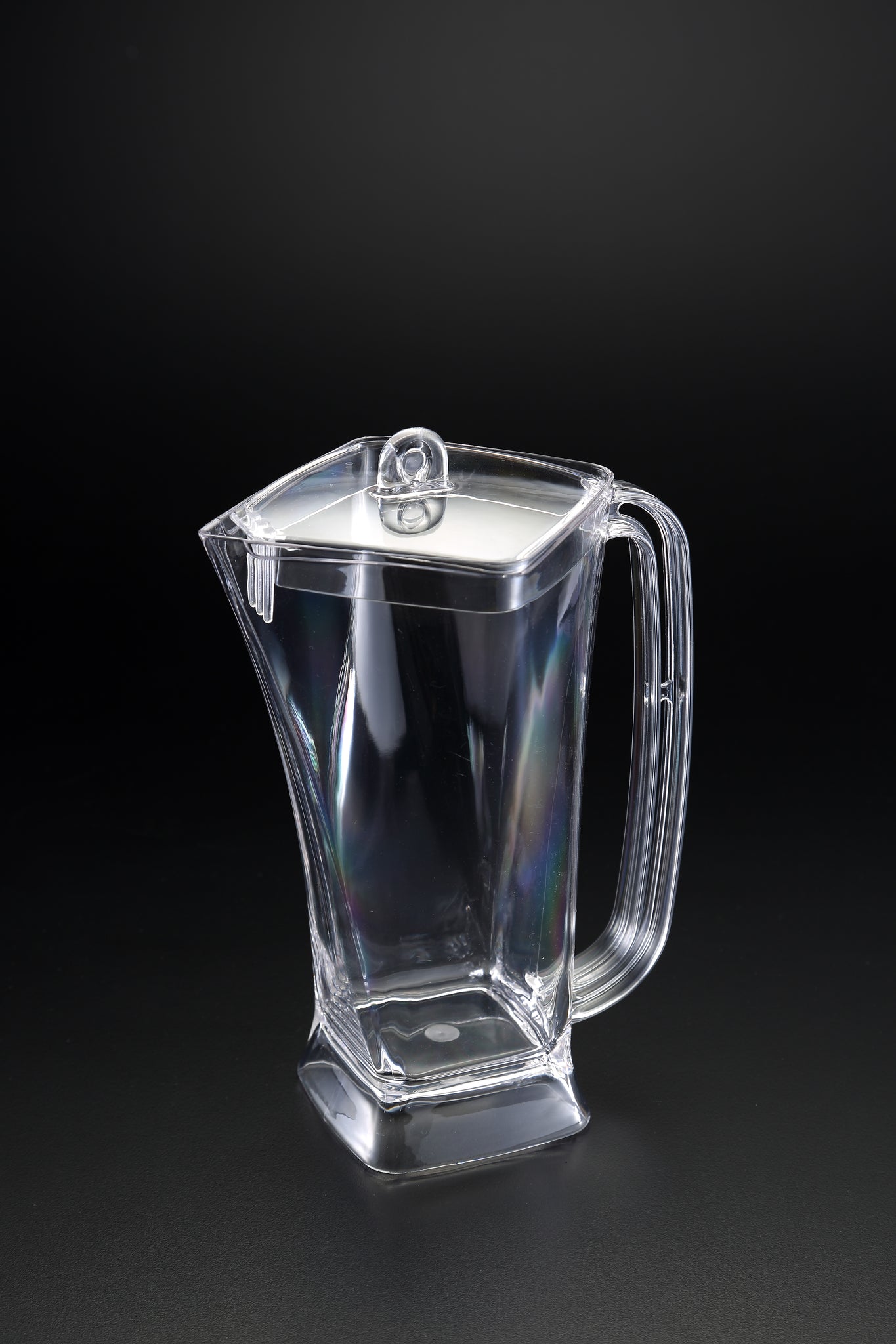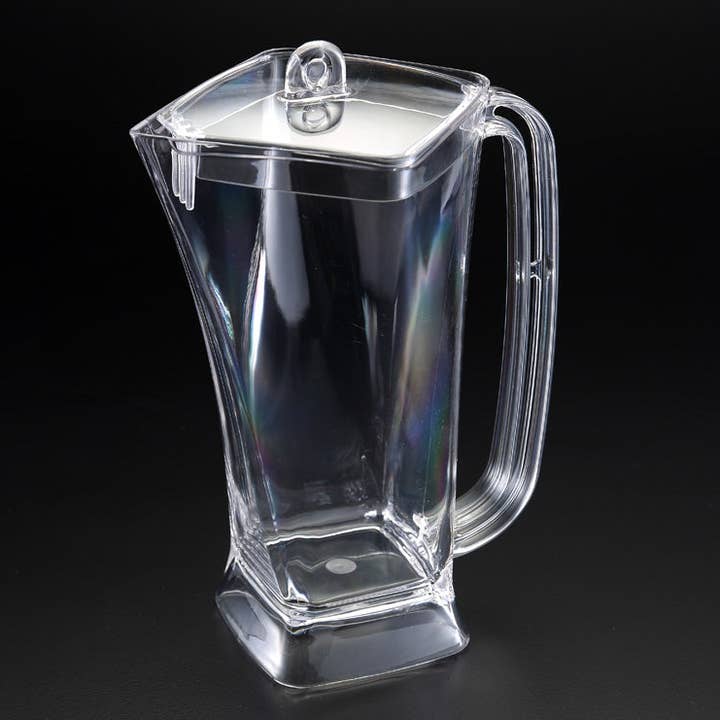 Serve cold beverages in style with the Square Twist 1 Quart Pitcher from Huang Acrylic. You will use this effortlessly chic and dependably durable acrylic pitcher for everything from an office meeting at work to drinks on the patio on the weekend. Huang Acrylic is an American company that is focused on quality, design, and style for the discerning customer since 1978