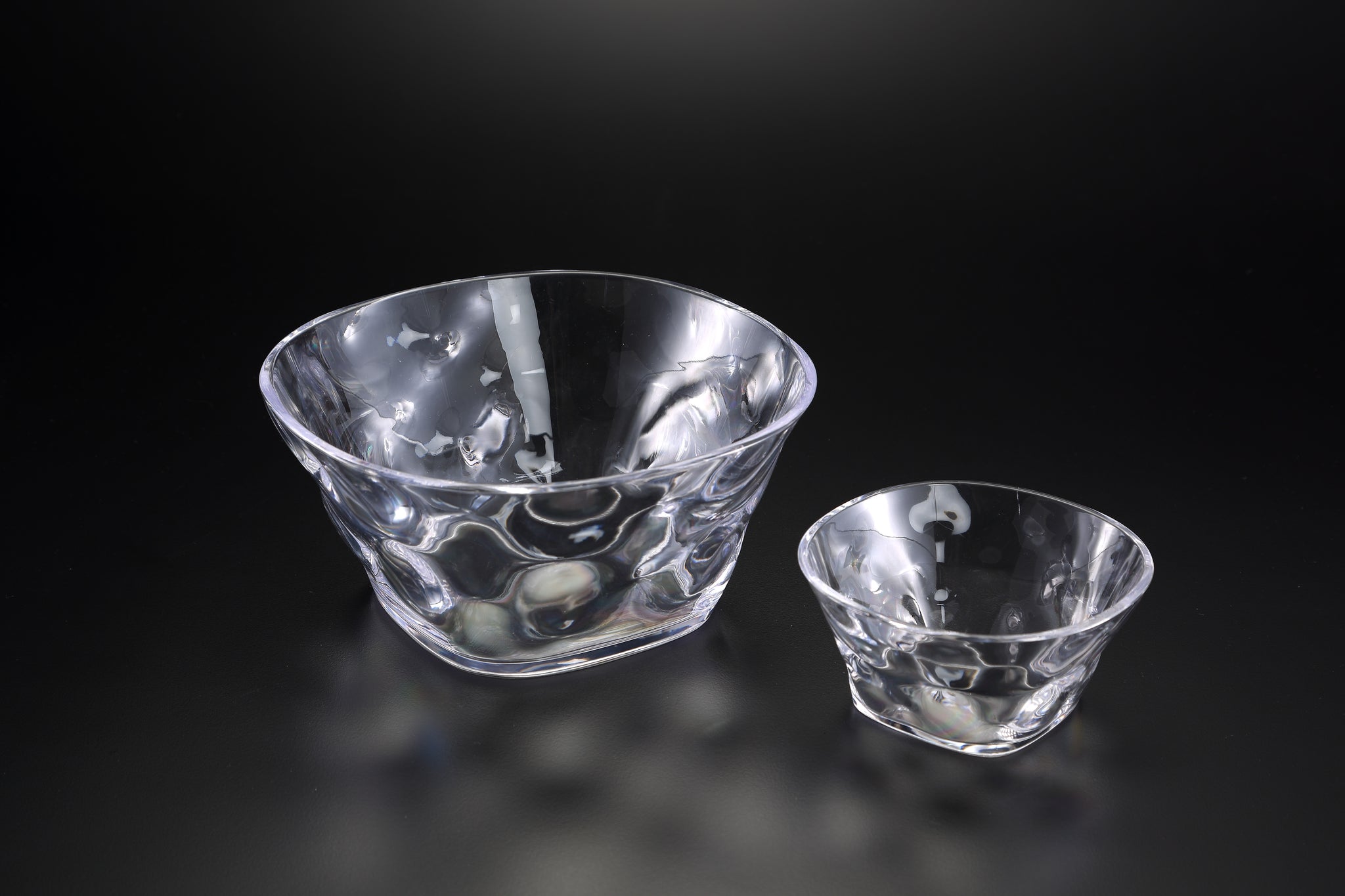 Trapezoid Shaped Dimpled Serving Bowl (Large) from Huang Acrylic. Its Elegant Clear Design and Durable Construction will enhance your Kitchen and Dining. Huang Acrylic is an American company that is focused on quality, design, and style for the discerning.