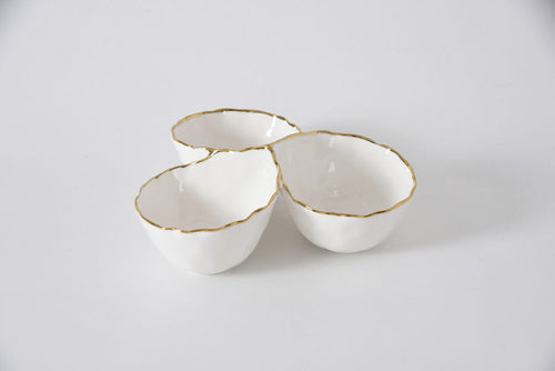 WCD4314 White Porcelain Chip and Dip Bowl Gold Edged