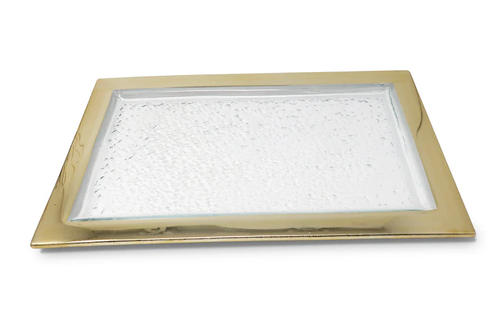 CT142G Glass Rectangular Tray with Gold Design- 10"W x 14.5"L