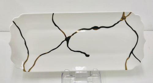 CH-5767 TEXTURED RECTANGULAR TRAY W/ JAGGED GOLD RIM -9