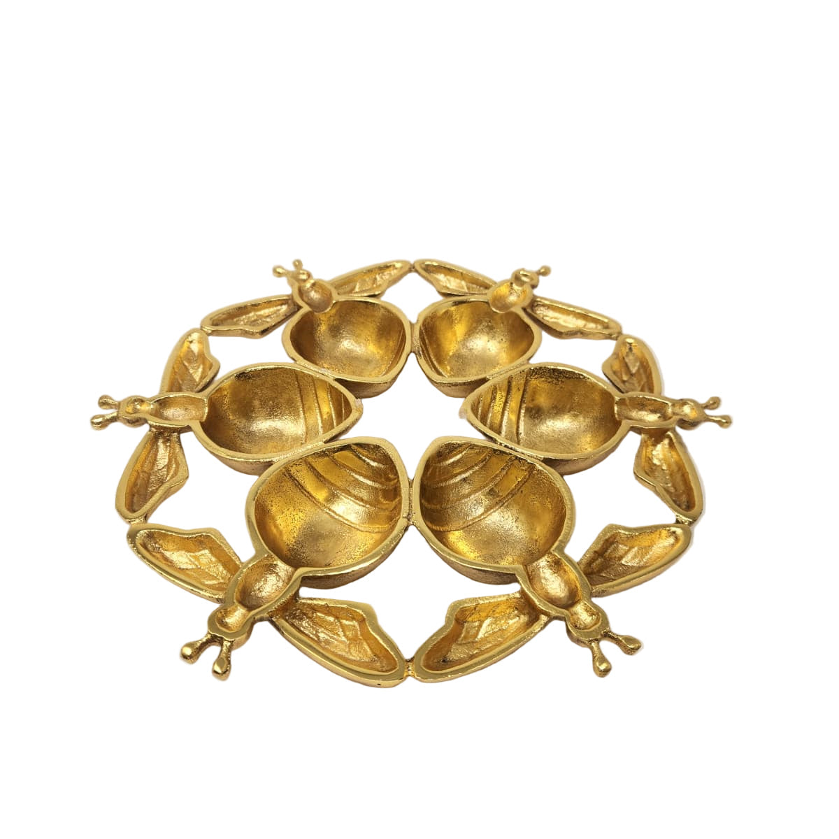 The TAJ Bee Six Sectional Simonim Tray Gold Out is expertly crafted for the Rosh Hashanah table, featuring six separate sections—one for each Simonim. Its elegant design balances functionality with refined aesthetics, allowing you to display each symbolic food with dignity. The sophisticated gold-toned finish enhances your holiday setting, making this tray an exquisite centerpiece that honors tradition while elevating your celebration.