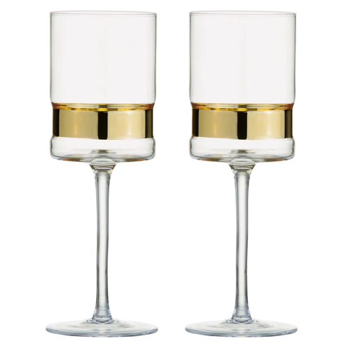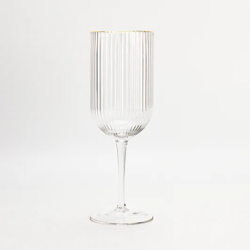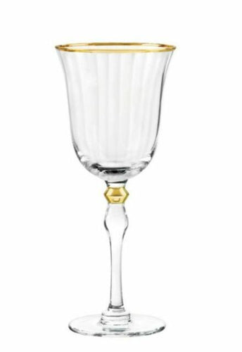 CWG3310W White Water Glasses with Gold Trim and Clear Stem