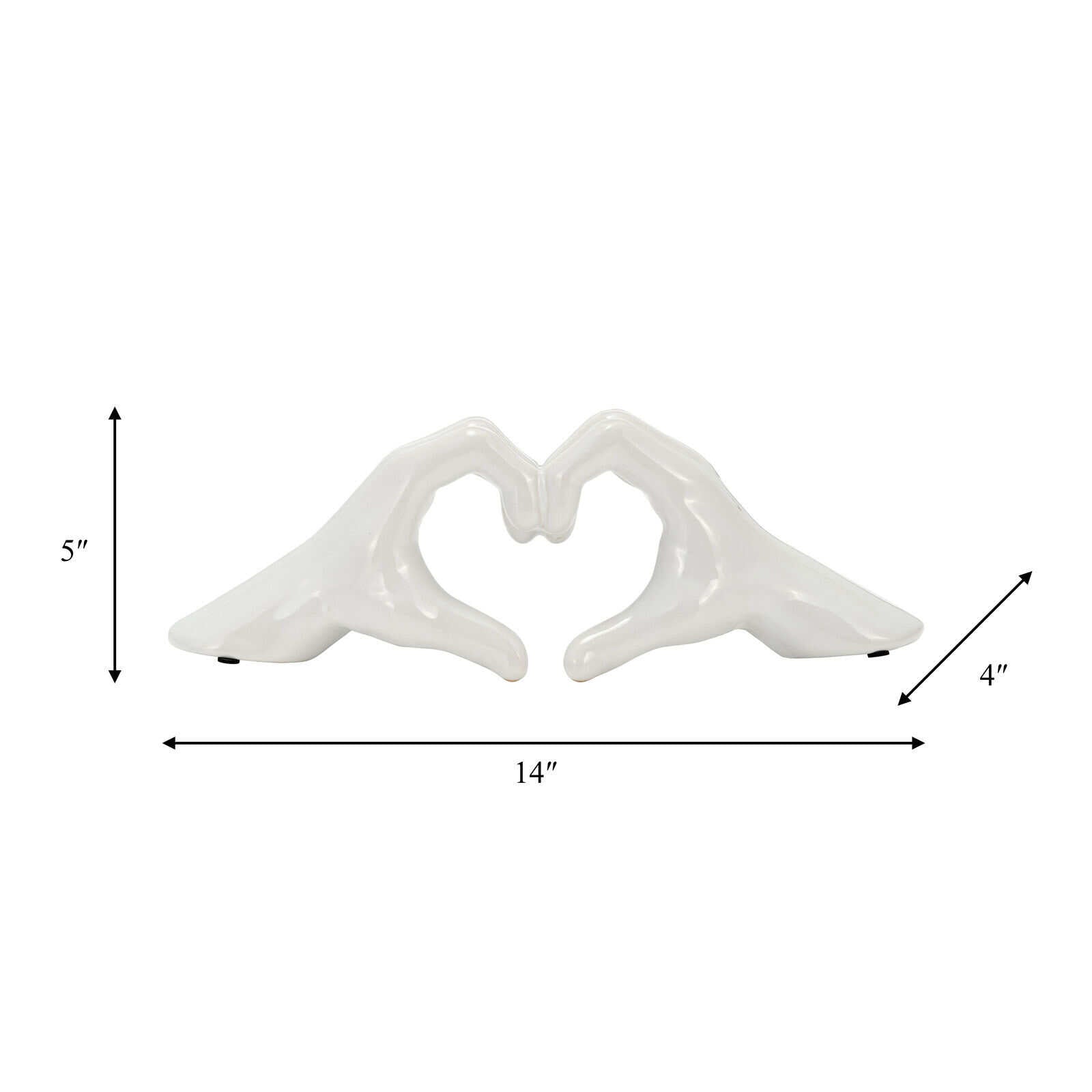 This high quality, durable decorative statue features two hands brought together to form a sweet heart shape. Designed in a classic white, the simple coloring will blend into any home or office decor for an attractive decorative accent that will leave your heart happy each time you spot it. Add to your desk, bedside stand, mantle or a close by shelf where you'll be able to catch a glimpse often!