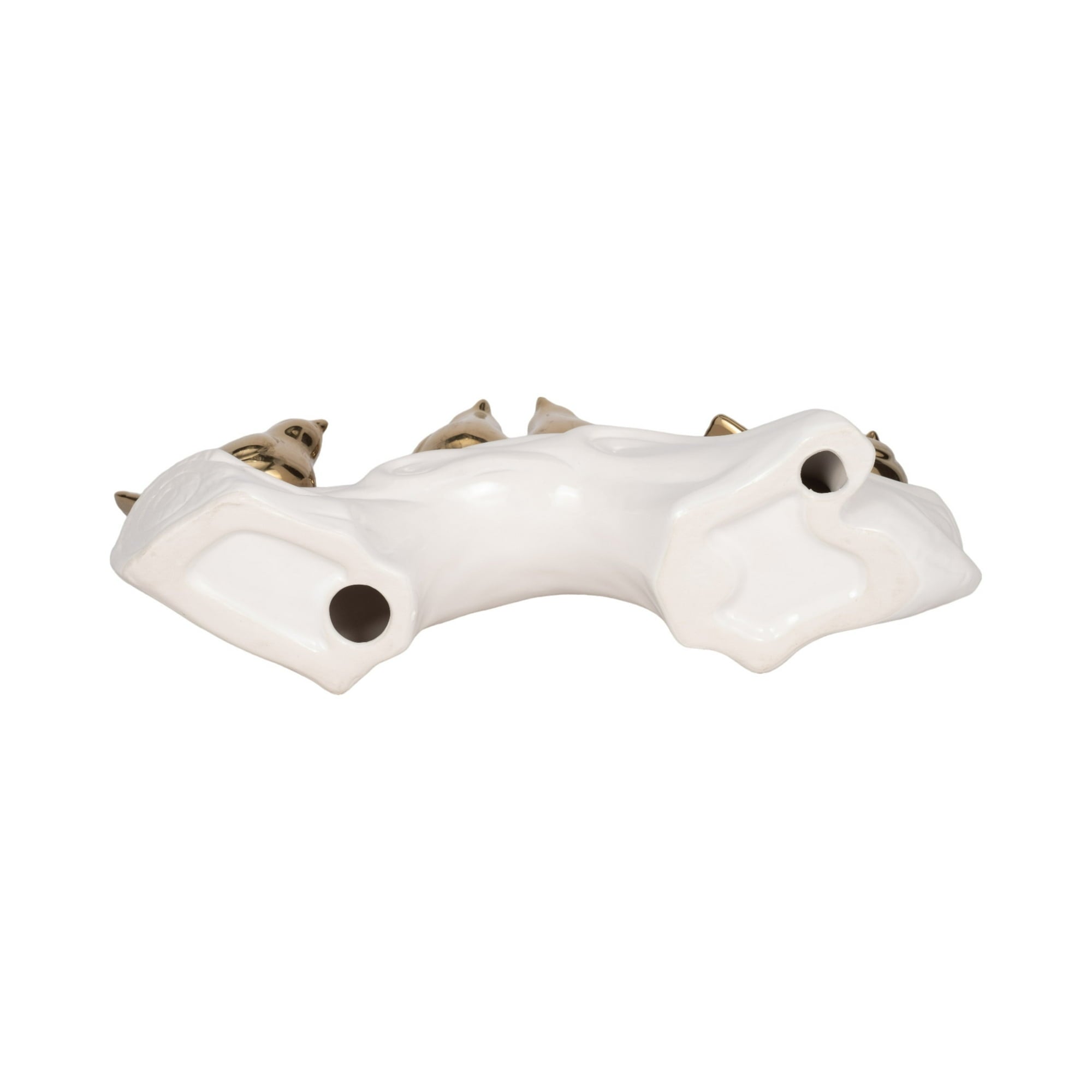 - This tastefully sized sculpture measures 14 inches, fitting effortlessly into your decor arrangement and color palette with its white and gold porcelain finish.