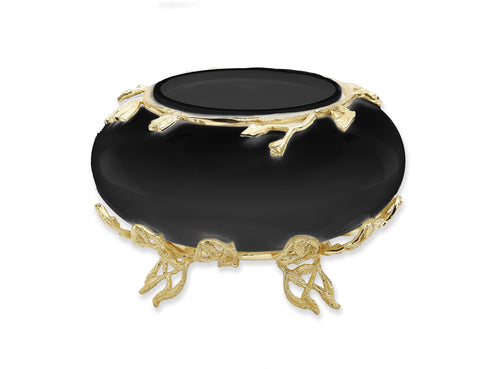 CRB2062B Black Glass Bowl with Gold Detail - 10"D x 6"H
