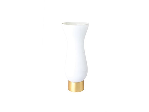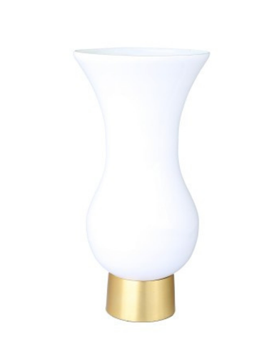 CRV823W White Glass Vase with Gold Base - 4.5"D x 12.25"H