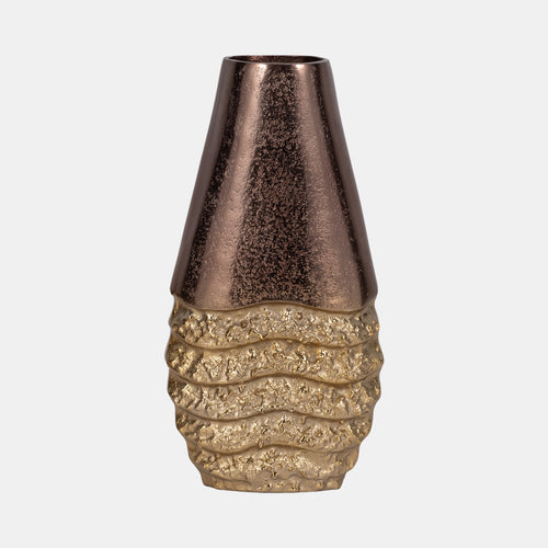 45722 Ceramic Round Vase with Combed Design Body LG Electroplated Finish Gold..6.50"x6.50"x11.50"H