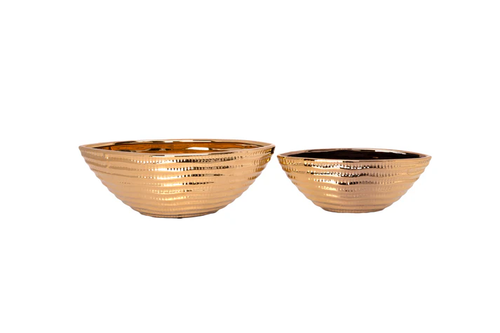 45761 Ceramic Round Vase with Brushed Design Body Gloss Finish Gold..9.00"x9.00"x4.00"H
