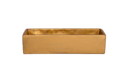 39811 Cement Rectangle Flower Pot LG Coated Finish Gold..14.50"x5.50"x3.50"H