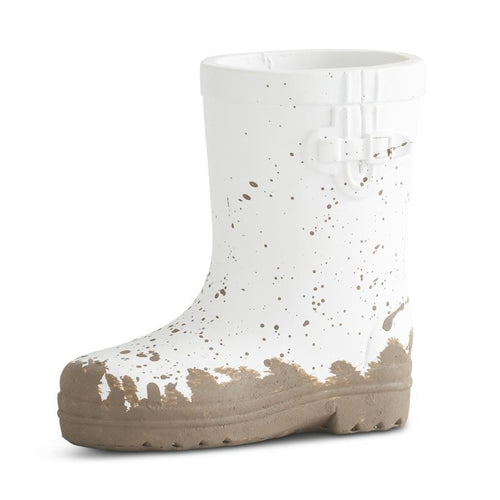 19926 Polystone Boat Shape Planter with Base Lacquered Finish White..13.50"x6.75"x5.50"H