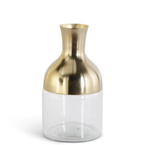 17559A-1 6 Inch Gold Metal & Clear Glass Long Neck Vase