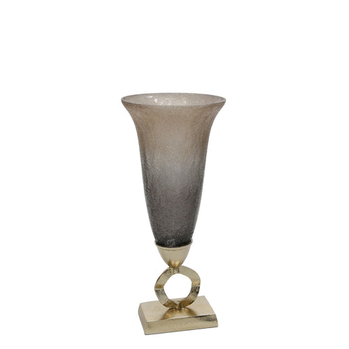 15254-01 GLASS 18"H VASE W/ ALUMINUM BASE, BRONZE/GRAY KD