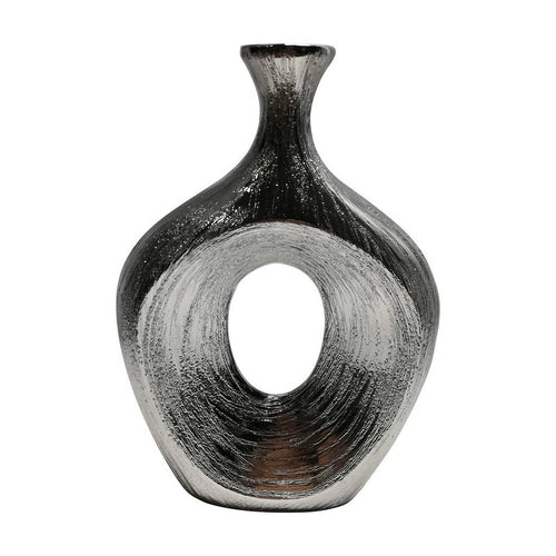 15119-01 13" SCRATCHED OVAL VASE CUT-OUT, SILVER