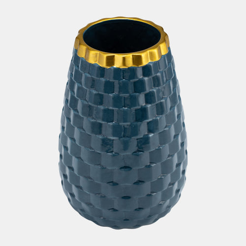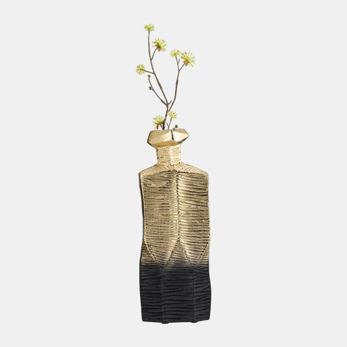 17500-02 Metal,16",Rigged Vase,Gold/Black